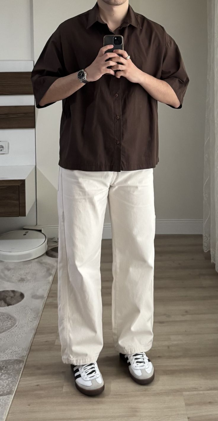 Men's Crinkled Co-Ord Set White